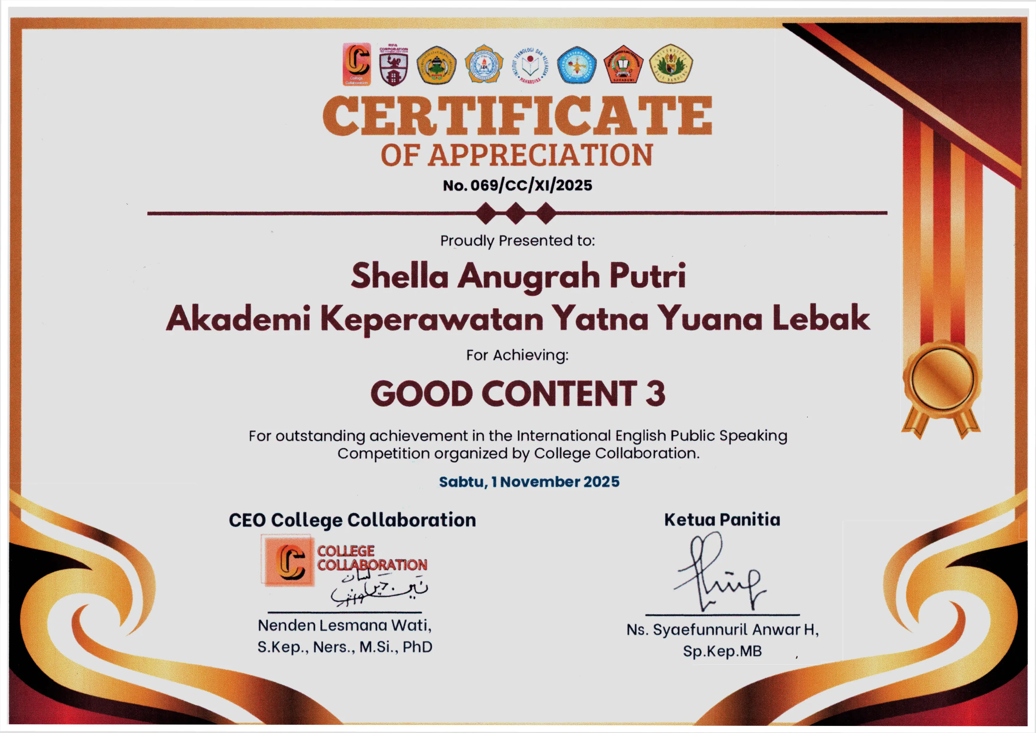 Pada tahun akademik 2001β2002 akademi mulai menerima mahasiswa pertama sebanyak 50 orang. Pada tahun 2005 pembinaan institusi beralih dari Departemen Kesehatan ke Departemen Pendidikan Nasional. Saat ini Akademi Keperawatan Yatna Yuana Lebak telah terakreditasi oleh BAN-PT dan LAM-PTKes.